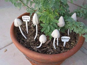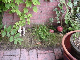 Slender Stem, Parasol and two clumps of Flat Caps - "They are fantastic fun, I love my Toadstool clumps". Amy Stutz - USA |